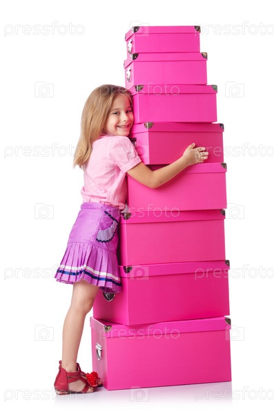 Маленькая милая девушка с большим количеством коробок