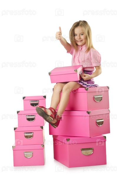 Маленькая милая девушка с большим количеством коробок