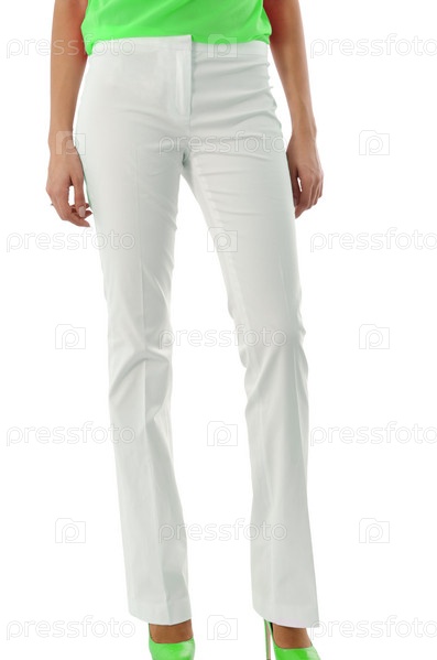 Модель в брюках, изолированная на белом