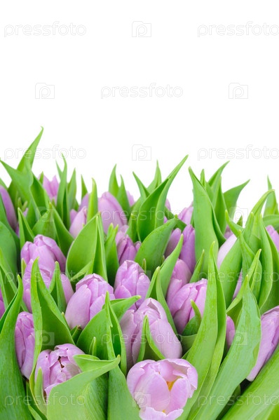 Фиолетовые тюльпаны, изолированные на белом фоне
