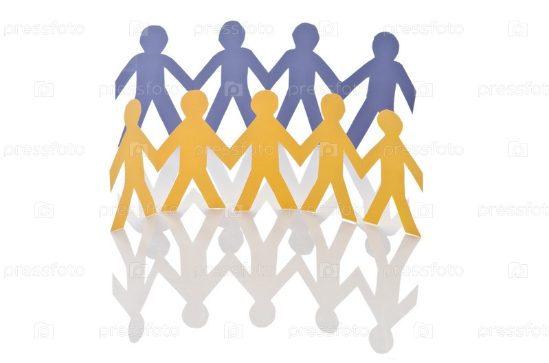 Концепция совместной работы с вырезанными из бумаги людьми