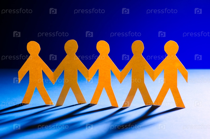 Концепция совместной работы с вырезанными из бумаги людьми