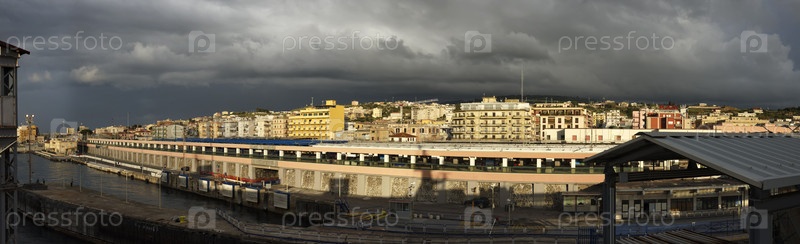 Италия, Калабрия, панорамный вид города Вилла-Сан-Джованни с одного из многочисленных паромов, которые соединяют город с Сицилией