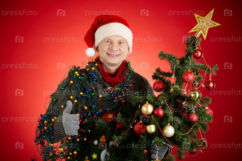 Мужчина с рождественской елкой