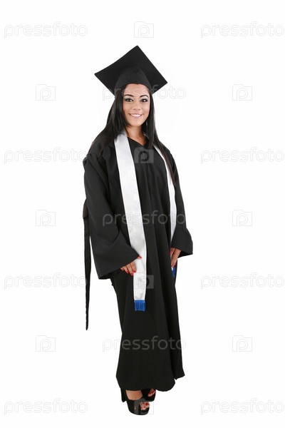 Улыбающаяся выпускница, изолированная на белом фоне