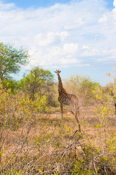 Африканский ландшафт и жираф в национальном парке Крюгера в Южной Африке