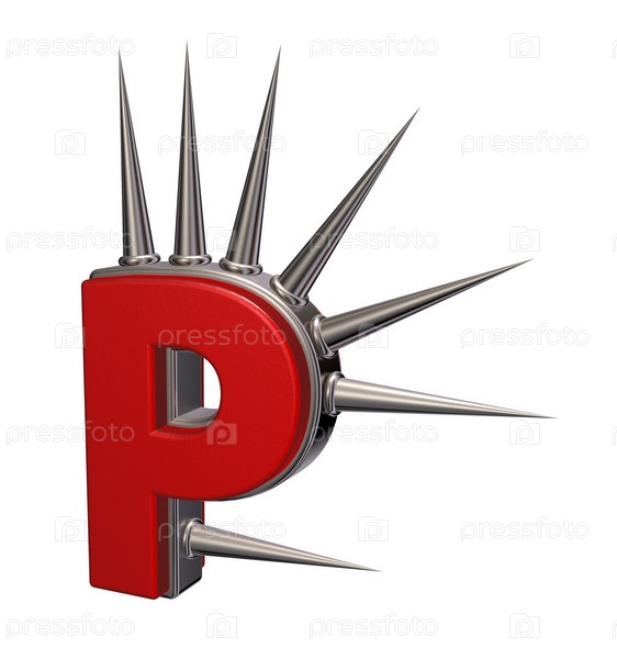 Буква p с металлическими шипами на белом фоне - 3d иллюстрация
