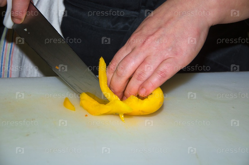 Руки режут перец для приготовления пищи