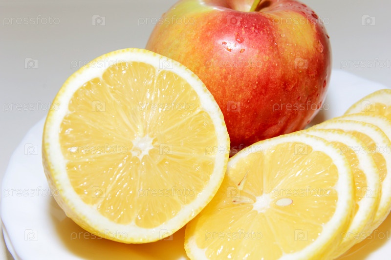 Спелые красивые лимон и яблоко как атрибуты здорового питания