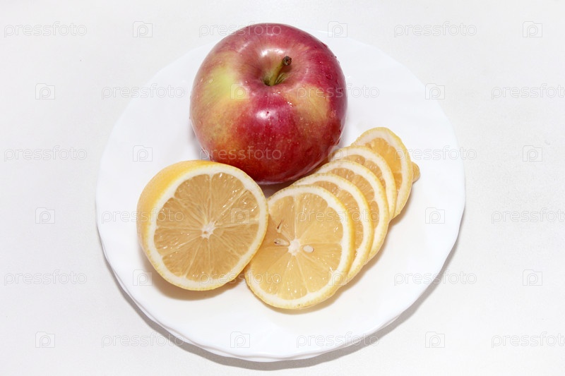 Спелые красивые лимон и яблоко как атрибуты здорового питания