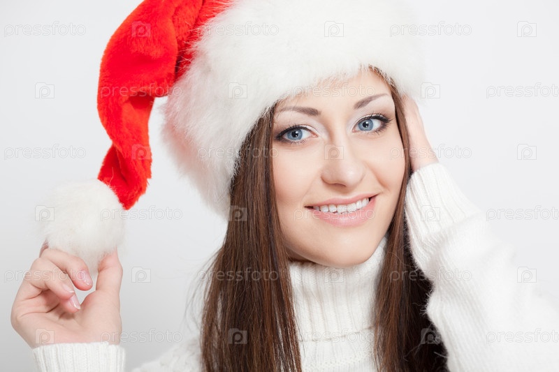Брюнетка в колпаке Санты