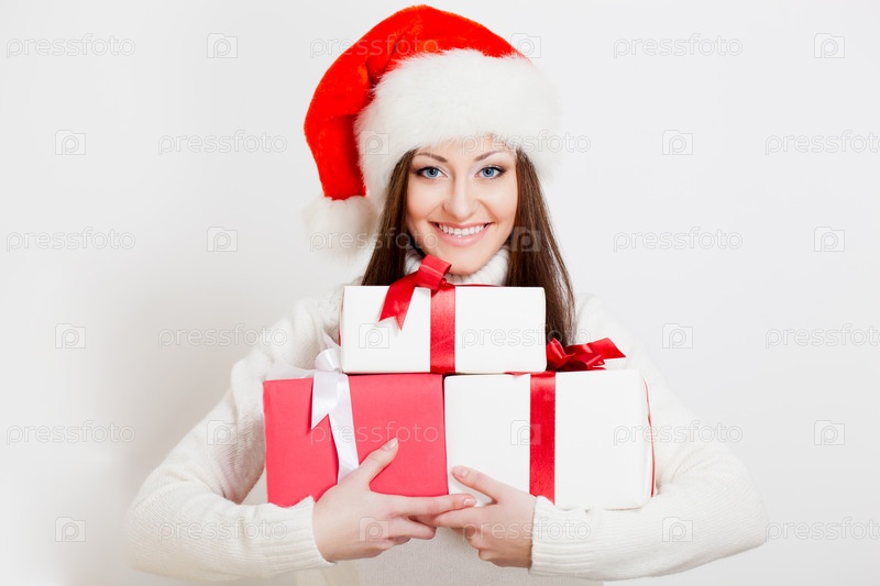 Брюнетка в колпаке Санты