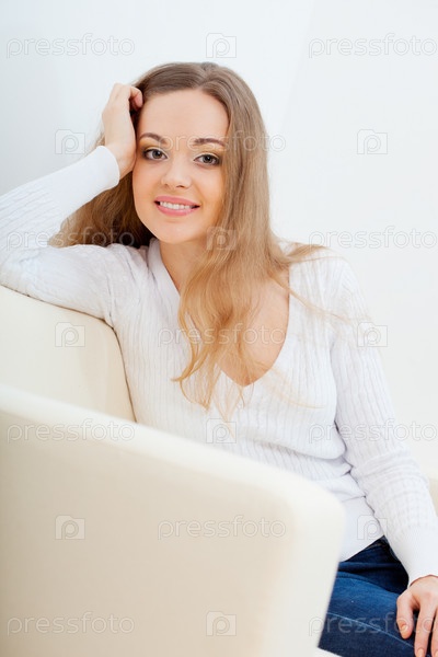 Женщина, сидящая на диване