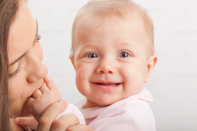 Мать целует маленькую руку ребенку