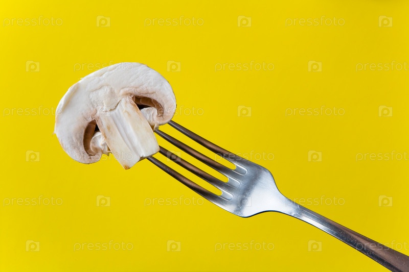 Половина шампиньона на вилке