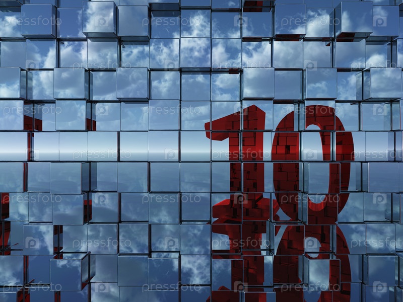 Стена из металлических кубиков отражает число десять - 3d иллюстрация