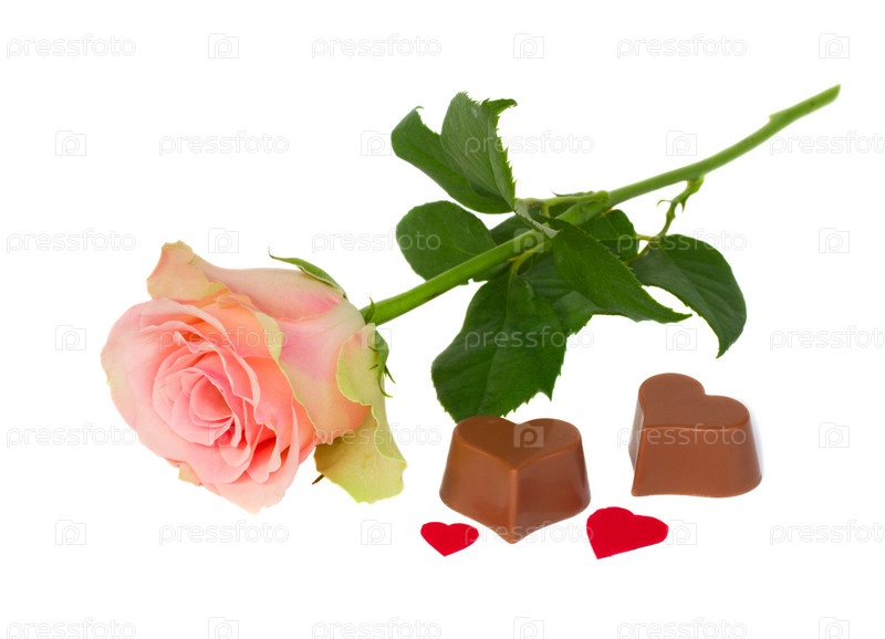 Розовая роза с шоколадом