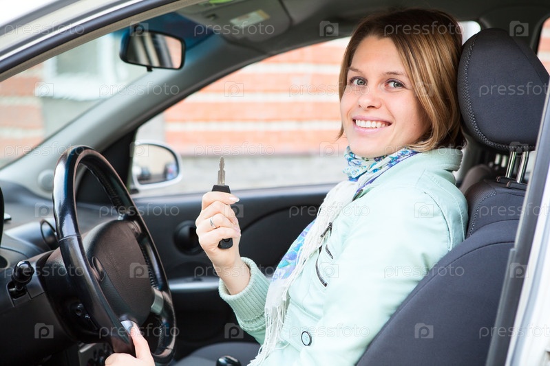 Блондинка с ключом в автомобиле