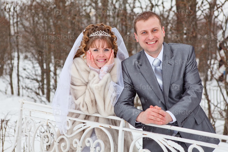 Молодожены в парке. Зимний сезон в России