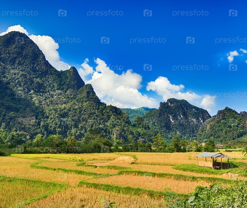 Красивый сельский пейзаж, Ванг Виенг, Лаос