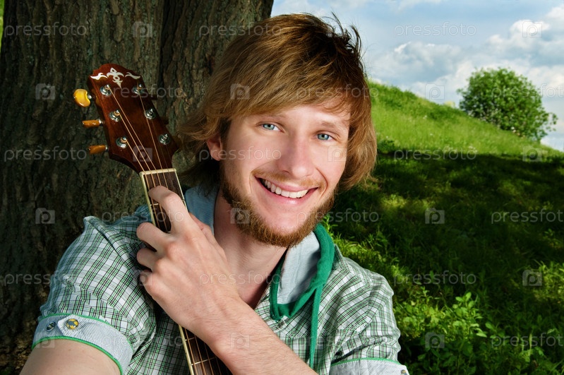 Молодой человек с гитарой возле дерева
