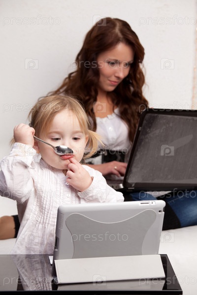 Мать и ребенок с ноутбуком