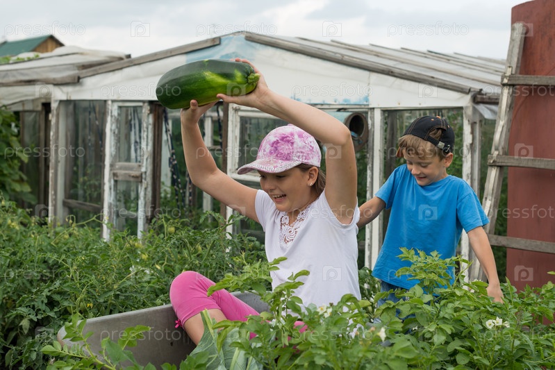 Мальчик и девочка в огороде