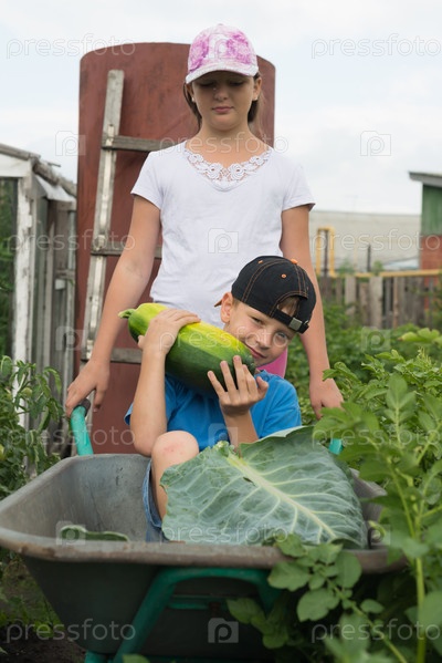 Мальчик и девочка в огороде