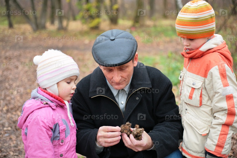 Дедушка с внуками в парке