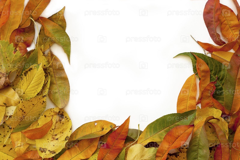 Рамка из осенних листьев персикового и вишевого дерева