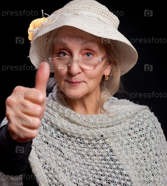 Пожилая женщина показывает большой палец вверх