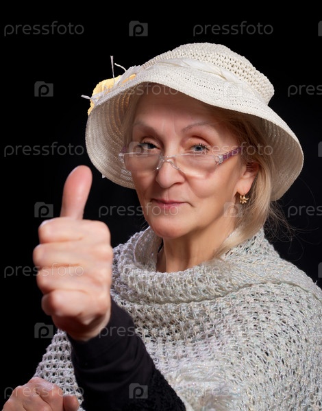 Пожилая женщина показывает большой палец вверх