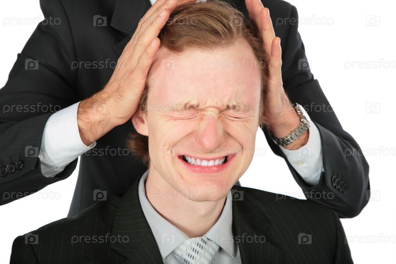 Один мужчина сжимает голову другому