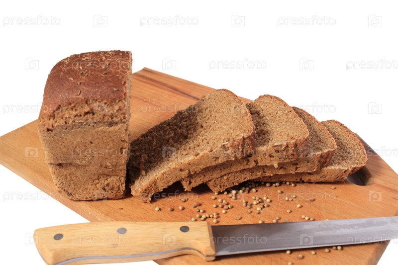 Ржаной хлеб нарезаный, нож на разделочной деревяной доске