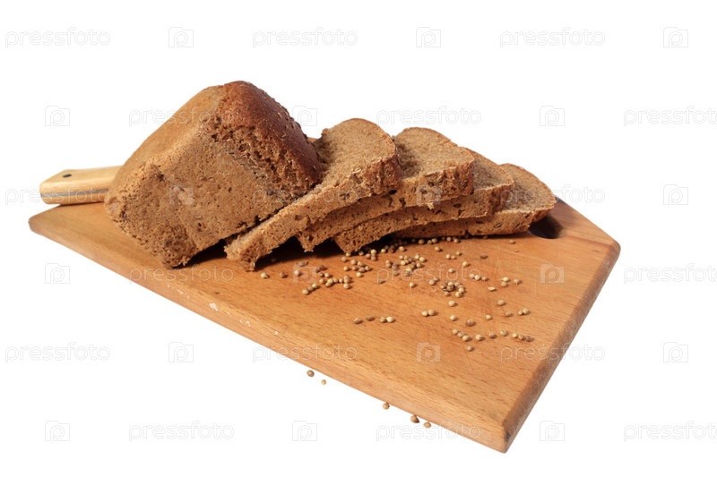 Ржаной хлеб нарезаный, нож на разделочной деревяной доске