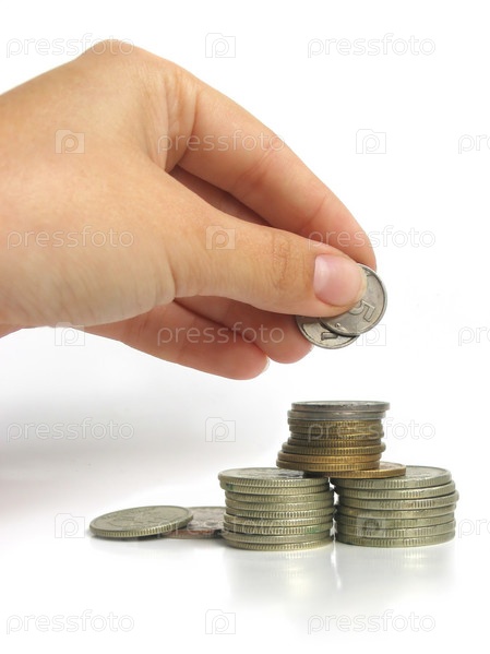 Рука над стопками монет
