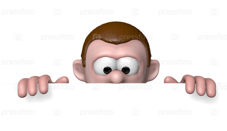 Мальчик смотрит на пустой белый баннер - 3D иллюстрация