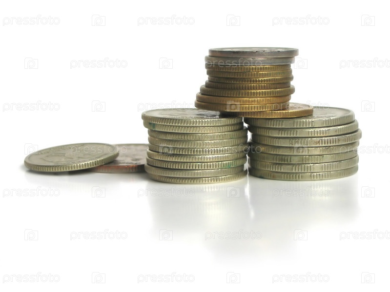 Монеты на белом фоне