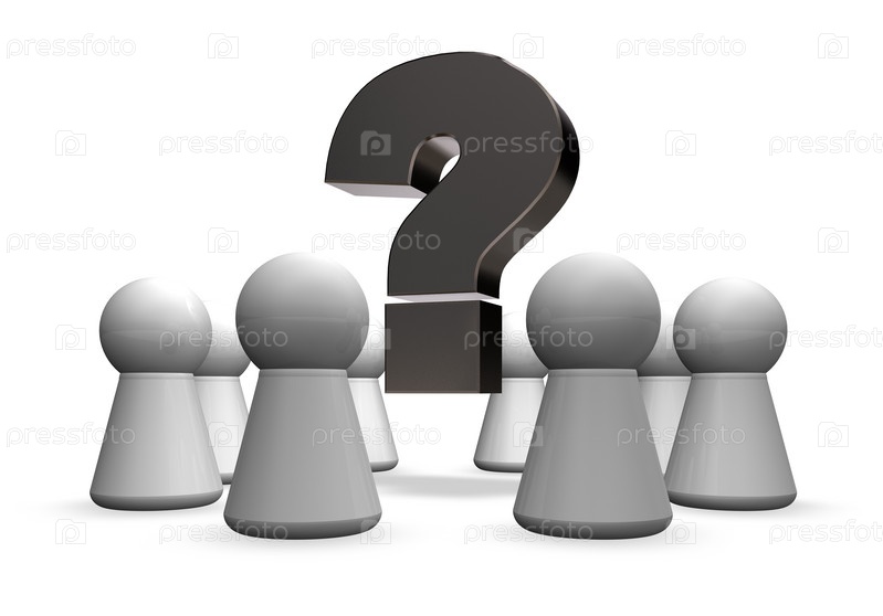 Круг из фигур и вопросительный знак - 3d иллюстрация