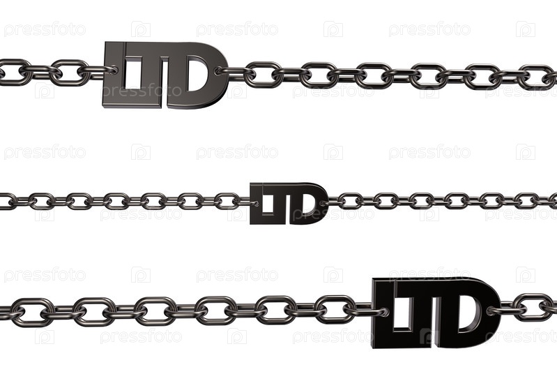 Металлический тег ltd на цепи - 3d иллюстрация