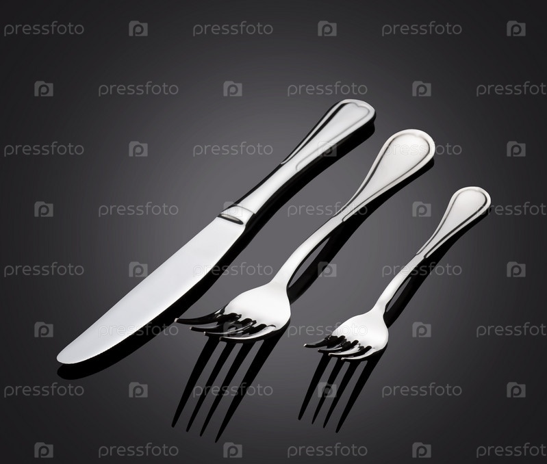 Блестящие столовые приборы на темном фоне