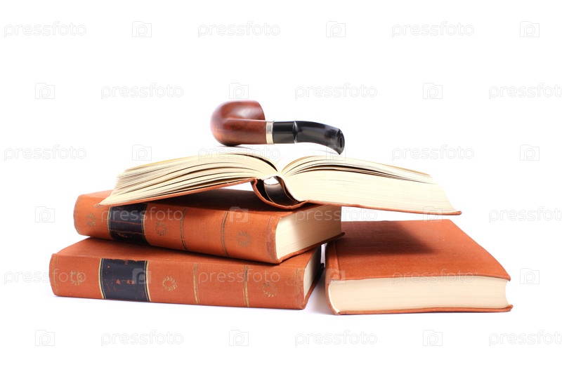 Изолированные фото четырех антикварных книг Гете, трубка для курения