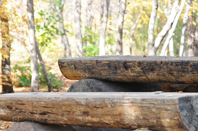 Деревянная скамья осенью