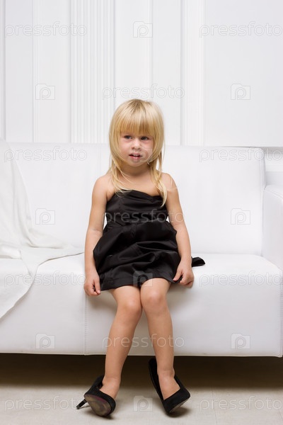 Маленькая девочка меряет большие туфли