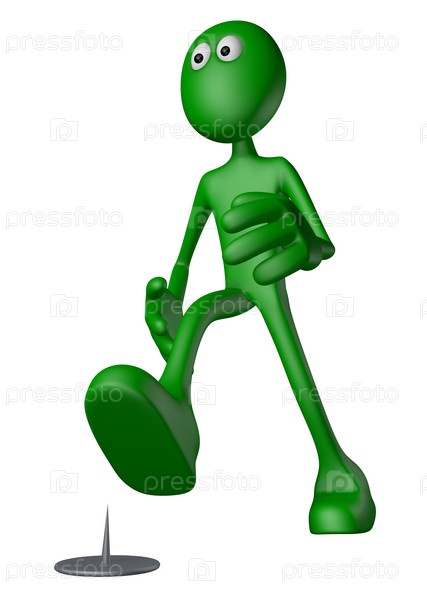 Следующий зеленый человек и кнопка на полу - 3d иллюстрация