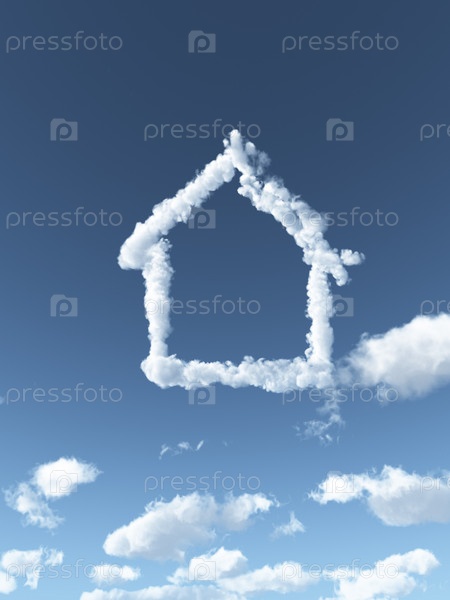 Облака образуют дом в небе - 3d иллюстрация