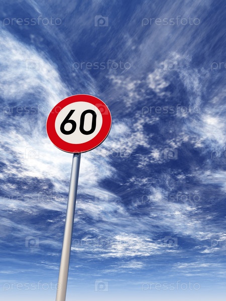 Цифра 60 на дорожном знаке - 3d иллюстрация