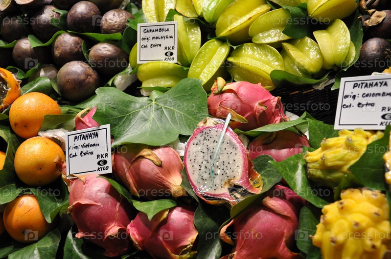 Экзотические фрукты на рынке Барселоны