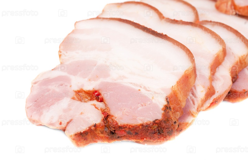 Нарезанный бекон, изолированный на белом фоне