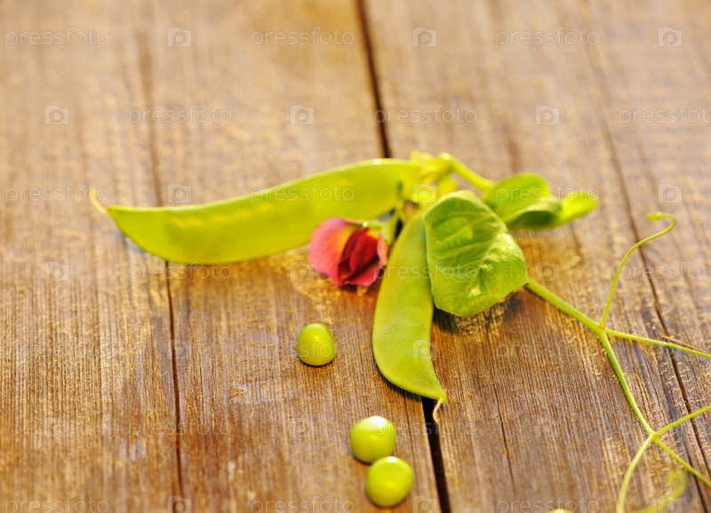 Свежий горох на деревянном столе
